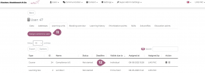 Under the “Learning units” tab in the user profile, it is possible to assign learning units individually (11). In the learning units in the user profile, these learning units are marked with “Individual” (12).