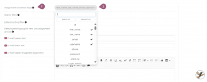 Under Assignment Conditions Key (1), you can use the drop-down menu to select the keys (2) that should automatically determine the assignment of a user to a group.