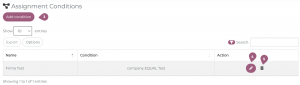 After selecting the keys, you can define the conditions by clicking on “Add condition” (3) under Administration > Settings > Assignment conditions. You can edit (4) the conditions in the “Action” column or delete (5) them if they are not assigned to any group.