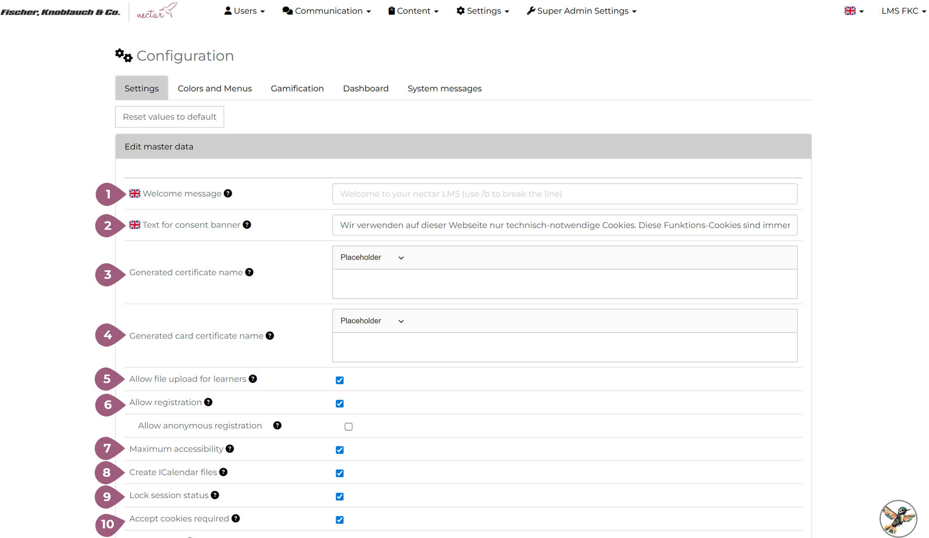 (11) Enable score: If administrators or super-administrators have enabled the “Show points balance” setting under Administration > Settings > Configuration > Settings, learners can view the number of points they have collected on their profile page. Detailed information about gamification in nectar LMS can be found here, and information about gamification points in the user profile can be found here (coming soon!).