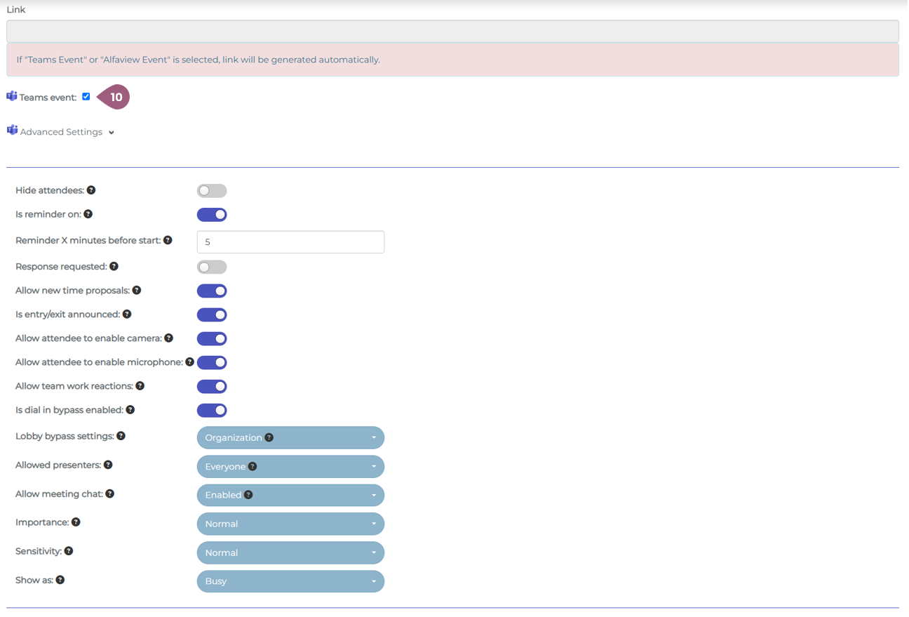 Finish Setting up a Meeting: Main settings