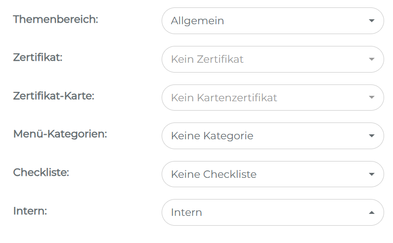Im LMS sind zwei Typen von Attributen vorhanden: Dropdown-Menü und Textfeld. Wenn das Dropdown-Menü ausgewählt wird, erscheint ein „Plus“-Button neben den Optionen (4). Optionen des Menüs können nicht gelöscht werden, auch dann nicht, wenn das Attribut noch nicht im Einsatz ist.