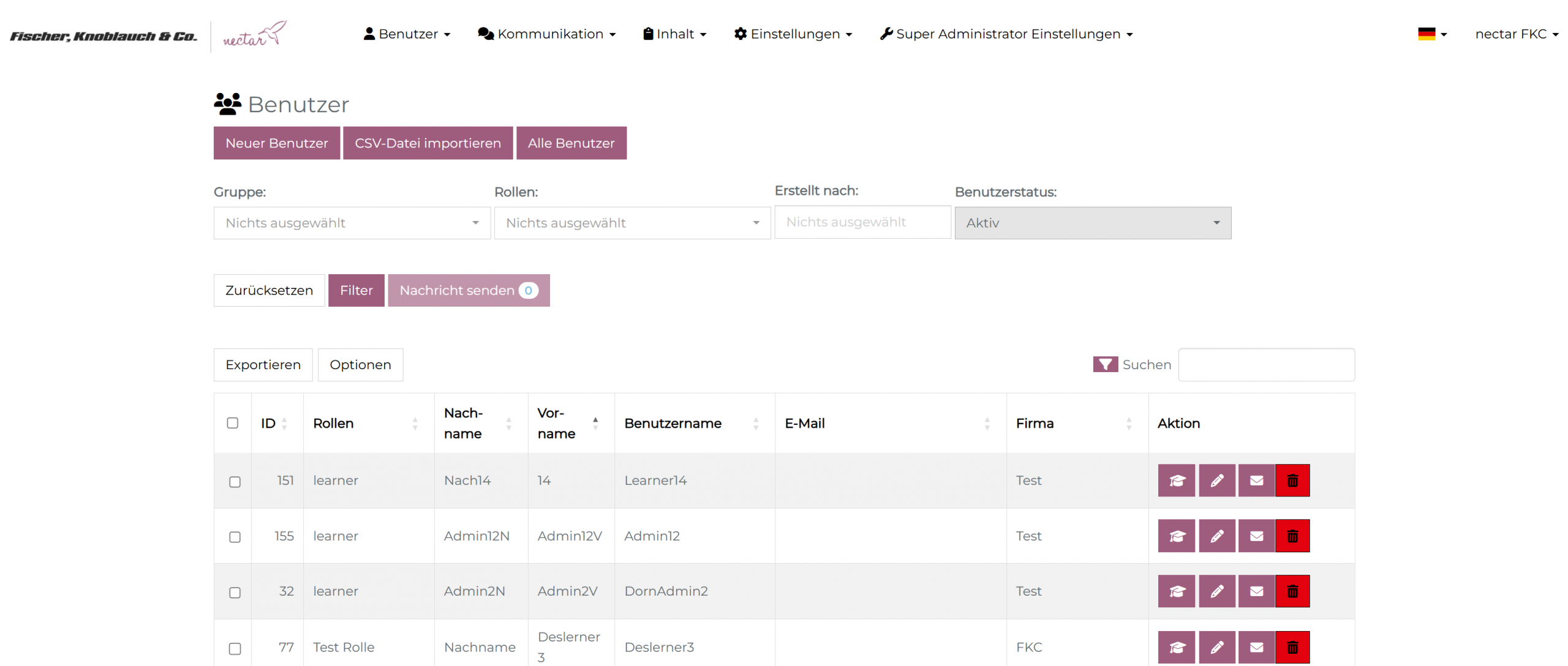 Dies betrifft Buttons sowohl in der Lerneransicht als auch im Administrationsbereich, u.a. im Dashboard, Kalender, Benutzer- und Lerninhalten-Ansicht und weitere. Im folgenden Screenshot sehen Sie ein Beispiel eines Buttons, wo die Farbe der Umrandung schwarz, des Hintergrunds rot und des Texts weiß ist:
