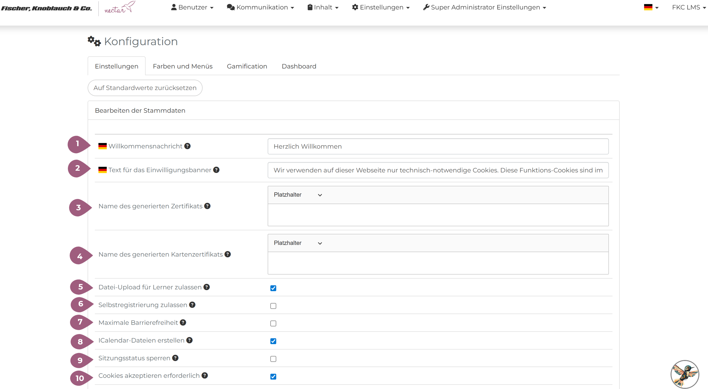 Bei weiteren Fragen wenden Sie sich bitte an nectar-support@fkc-online.com.