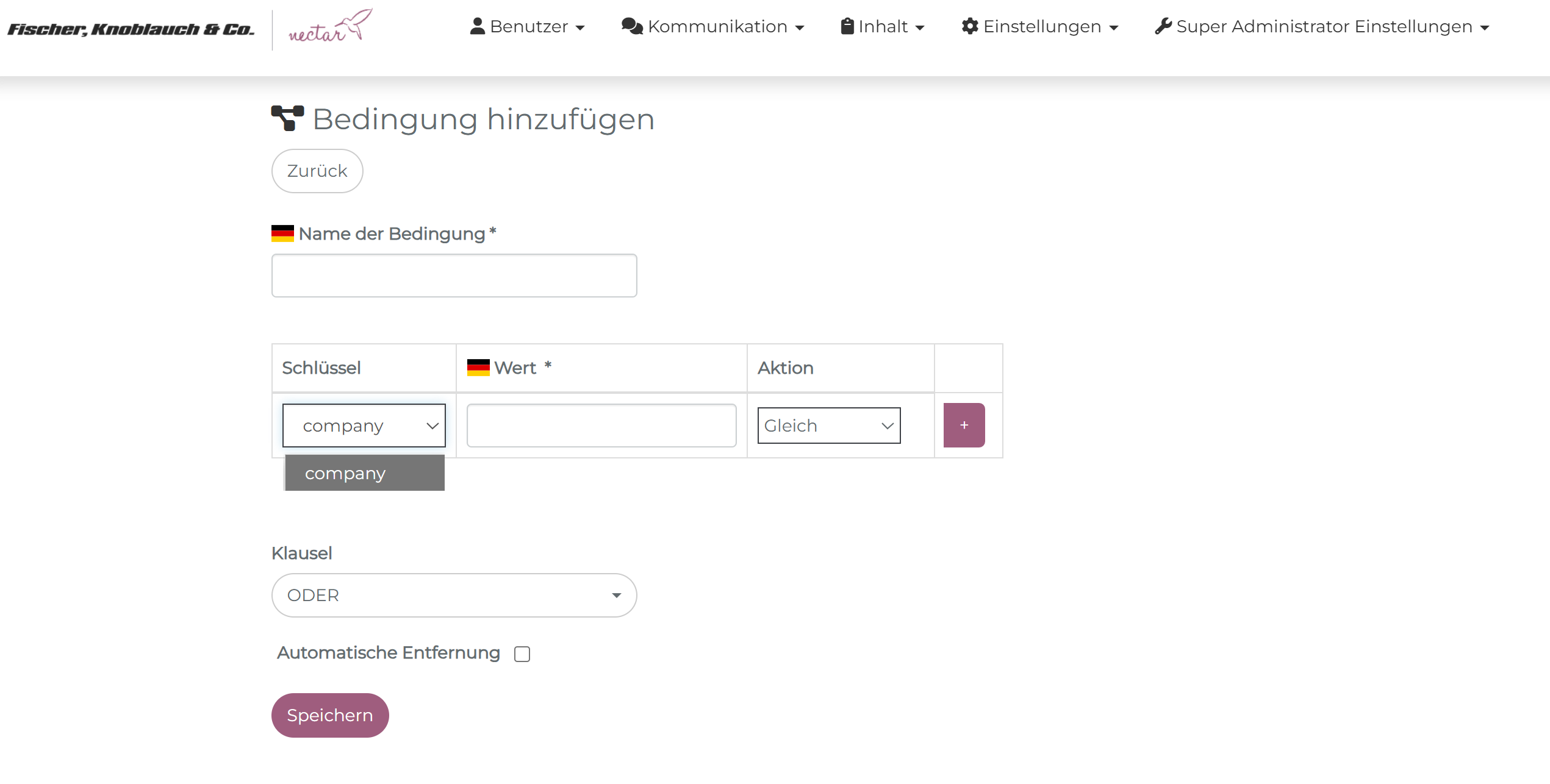sind in der Erstellung von einer Zuordnungsbedingung sichtbar: