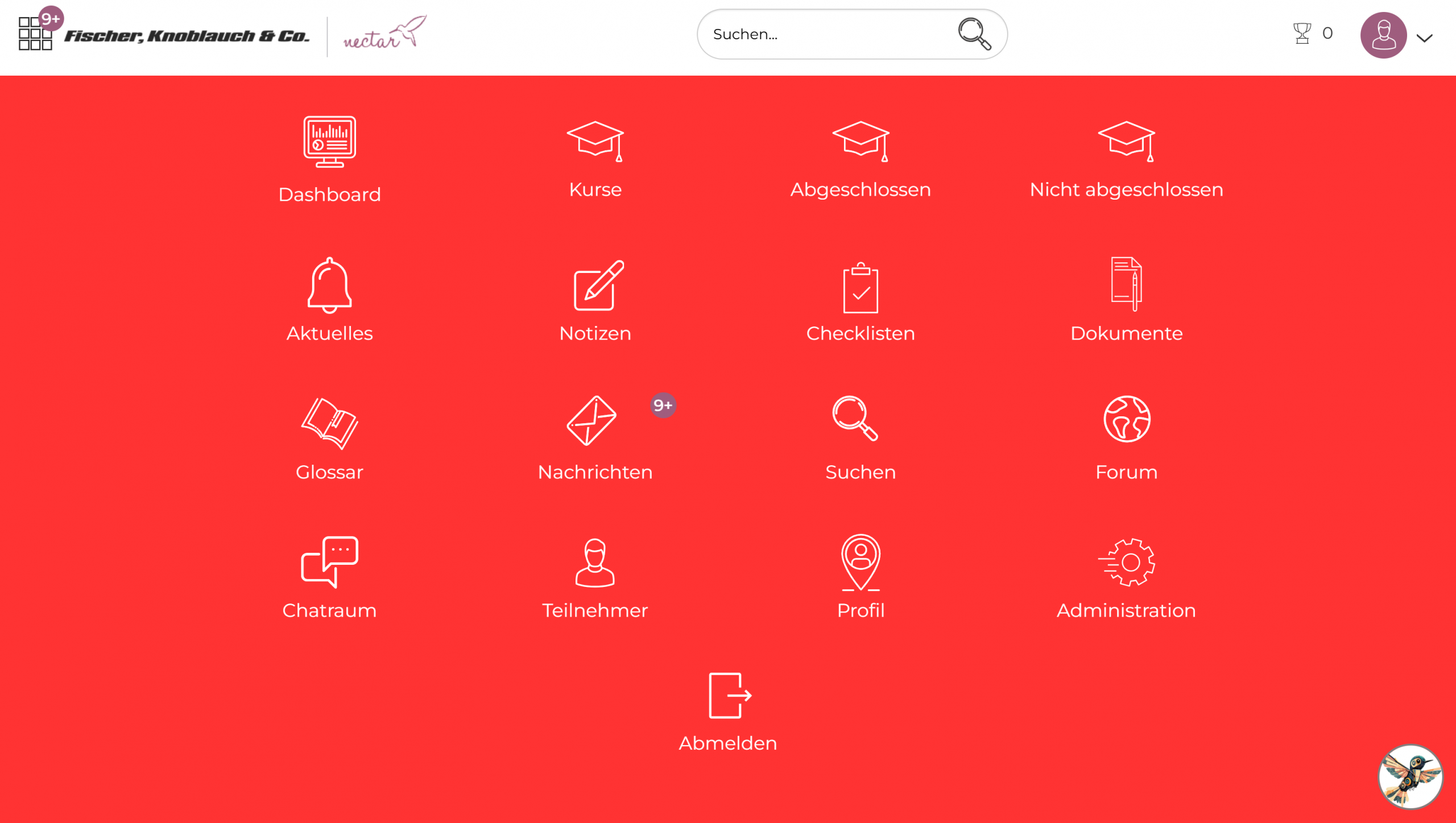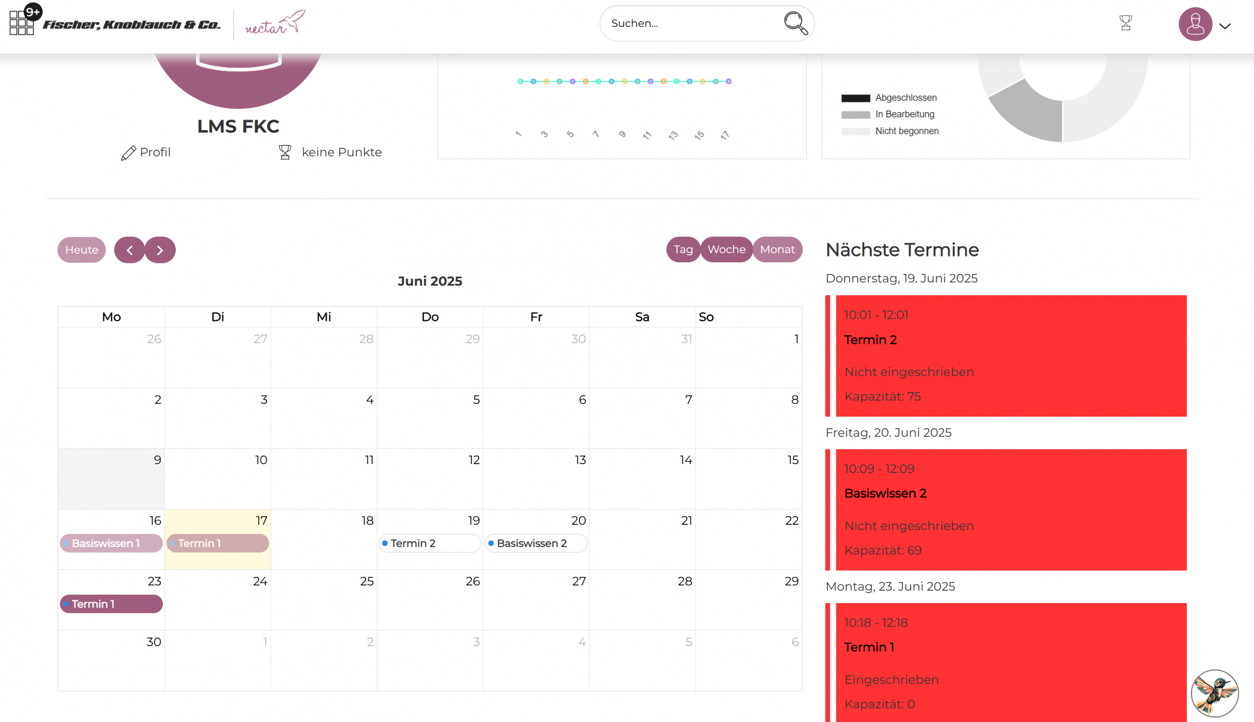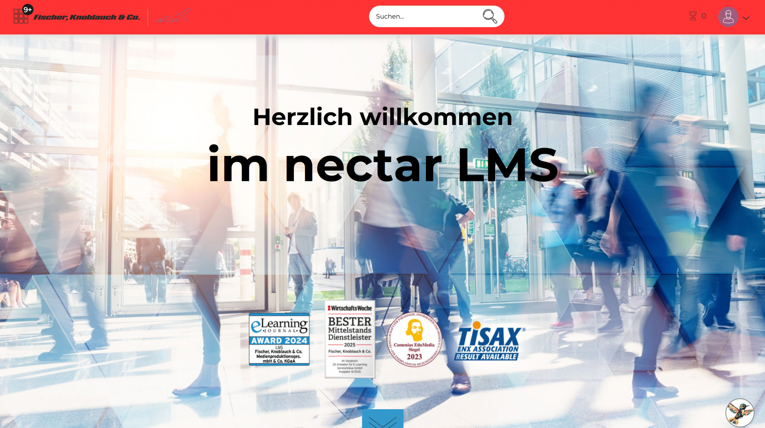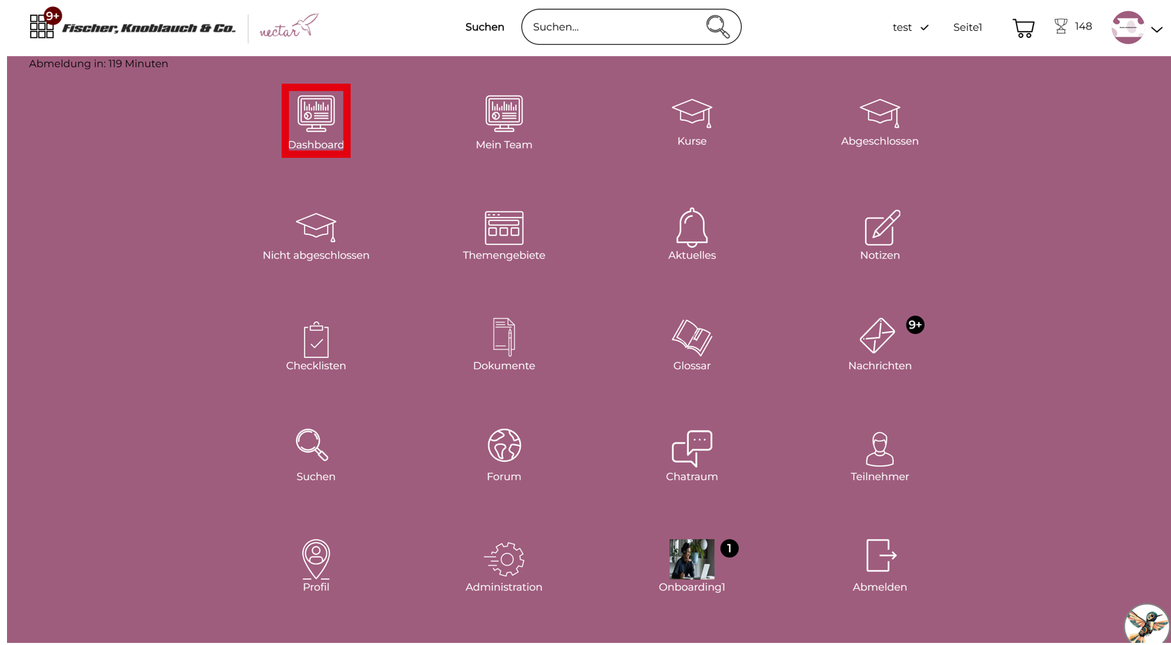 7. Tabellen Kopfzeilenfarbe: Es geht um die Farbe der Tabellen-Kopfzeilen. Ein Beispiel davon sehen Sie mit rot markiert im folgenden Screenshot. Weitere Stellen im nectar LMS wo diese Einstellung die Kopfzeile färbt, sind: im Lernerbereich unter Profil und im Administrationsbereich u.a. unter Administration > Benutzer > Benutzer, Gruppen, in den jeweiligen Statistiken, unter Administration > Inhalt > Kurse, Tests usw.