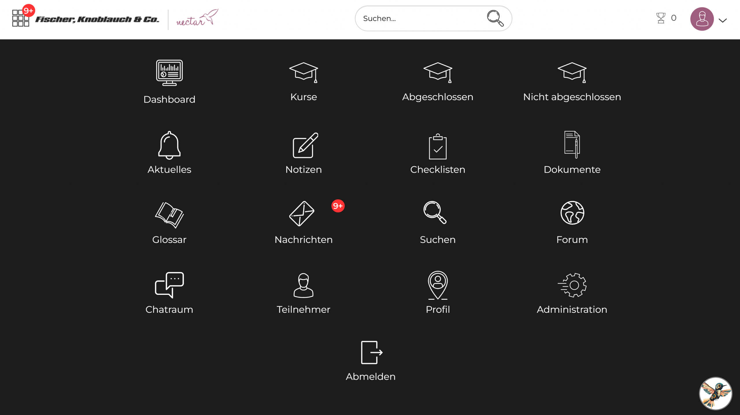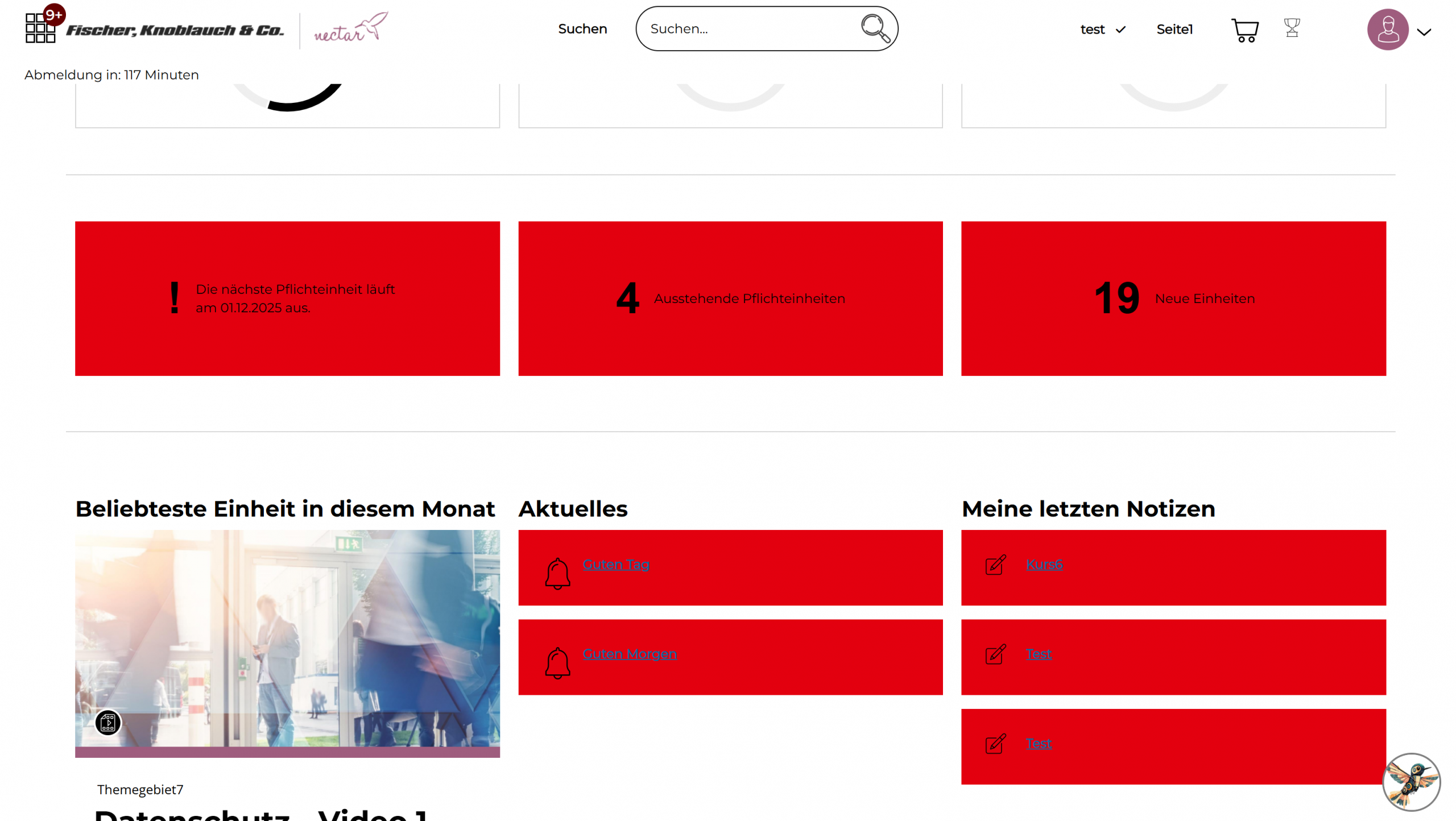 18. Frontend-Textfarbe: Es geht um die Farbe des Texts in der Lerneransicht wie zum Beispiel die Titel der Lerneinheiten und des Dashboards (rot im Screenshot):