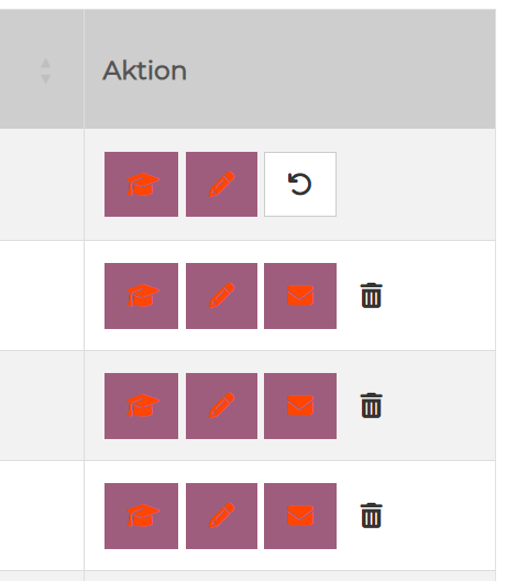 16. Farbe des Schaltflächensymbols: Es geht um die Farbe der Grundsymbole überall im System. Ein Beispiel sehen Sie mit Rot im folgenden Screenshot aus der Benutzeransicht unter Administration > Benutzer > Benutzer: