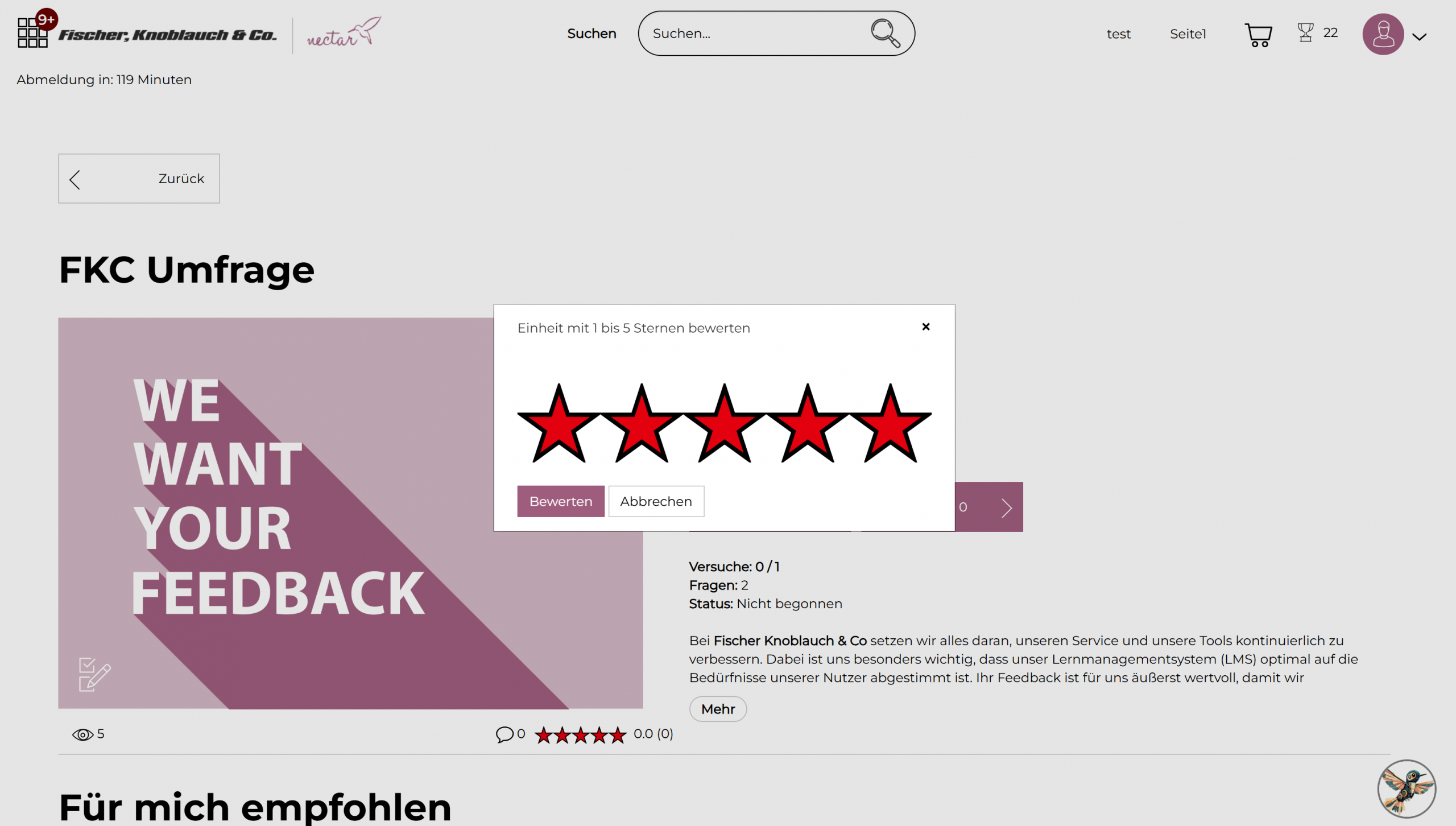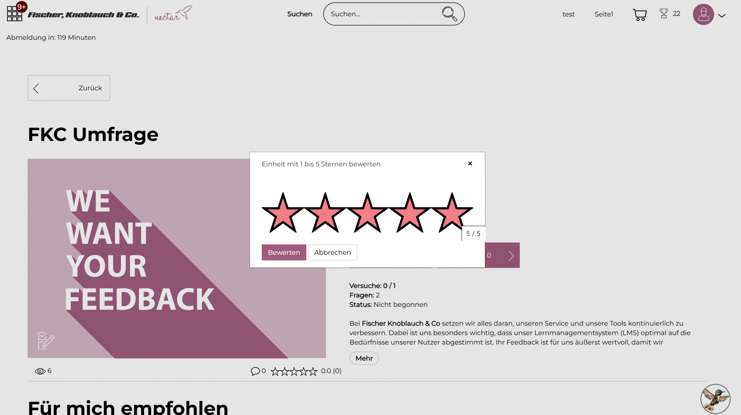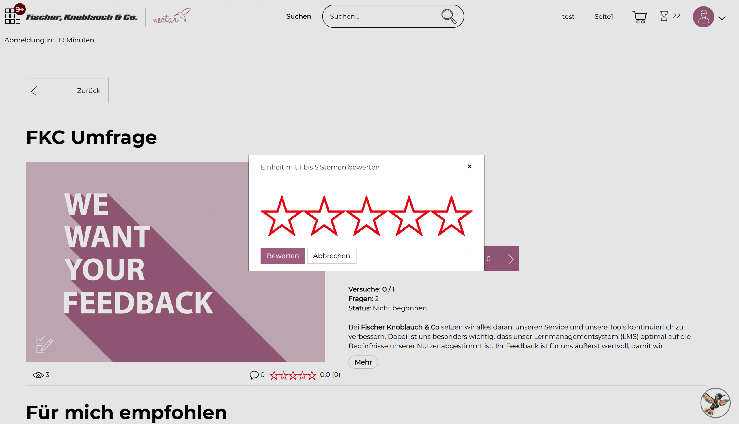 26. Farbe der Sternumrandung: Es geht um die Farbe der Sternumrandung bei der Bewertung einer Lerneinheit (rot im Screenshot):