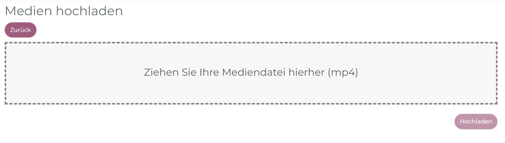 Nachdem Sie alle gewünschten allgemeinen Angaben gemacht haben und Einstellungen vorgenommen haben, klicken Sie auf „Speichern“, um im nächsten Schritt Ihre Video- oder Audio-Datei (mp4 oder mp3) hochzuladen.