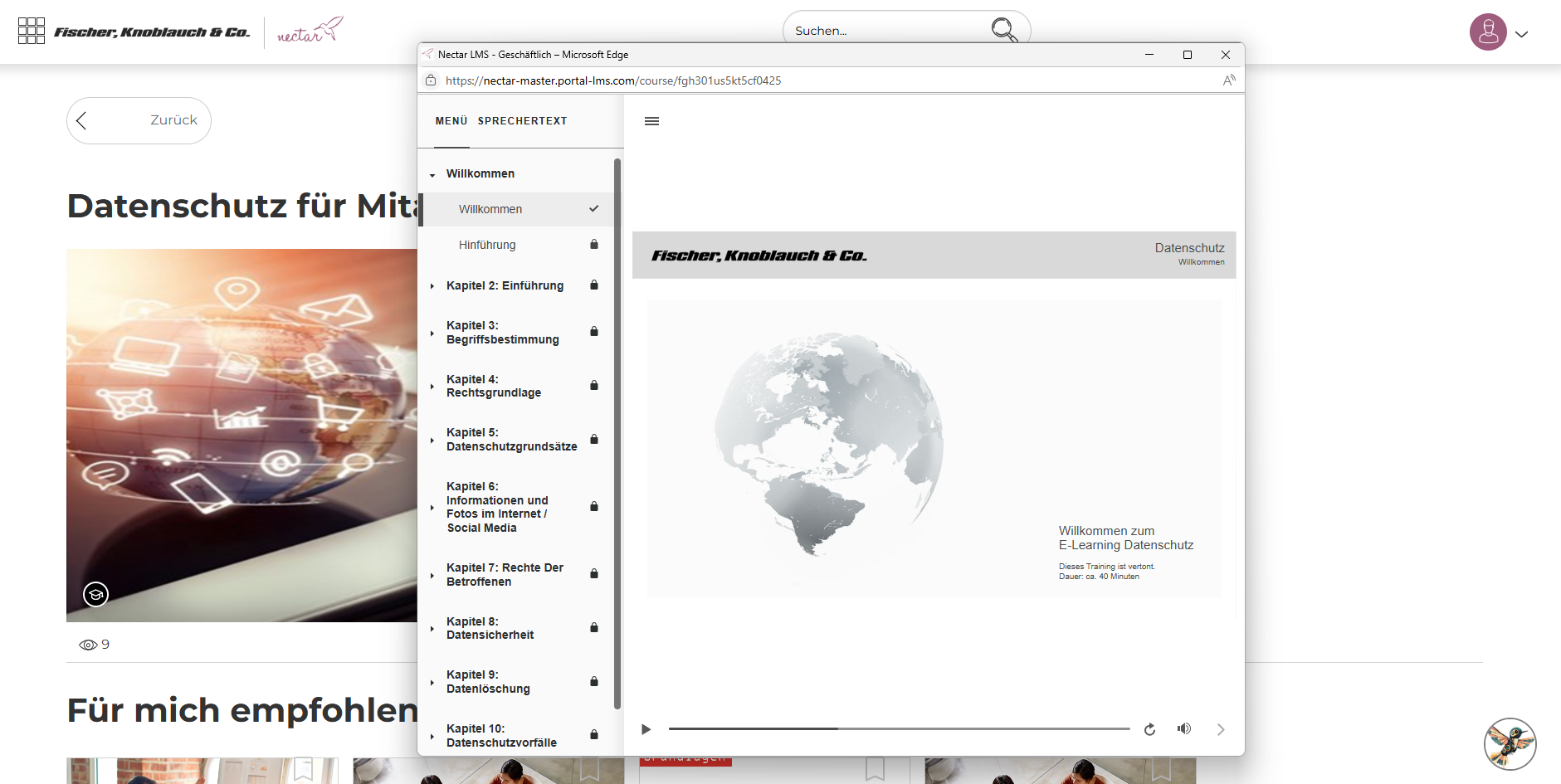Wenn Sie hingegen bei (7) die Option “Overlay” auswählen, wird der Kurs beim Start innerhalb des aktuellen Fensters geöffnet – wie im folgenden Screenshot dargestellt: