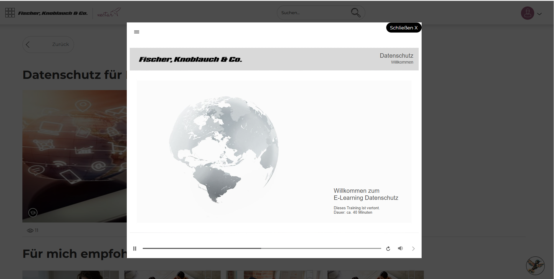 Wenn Sie bei (7) die Option “Popup” auswählen, wird beim Starten des Kurses ein neues Fenster geöffnet – wie im folgenden Screenshot dargestellt: