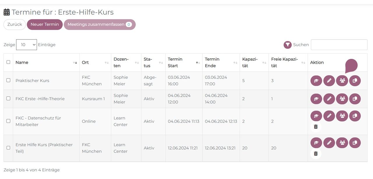 (3) Auf das Teilnehmer-Symbol neben dem jeweiligen Seminartermin klicken