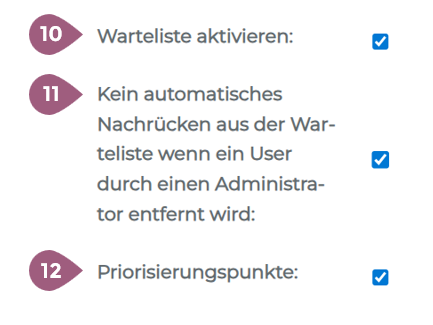 (11) Zur weiteren Verwaltung der Warteliste ist es möglich, das automatische Nachrücken von Benutzern aus der Warteliste zu deaktivieren.