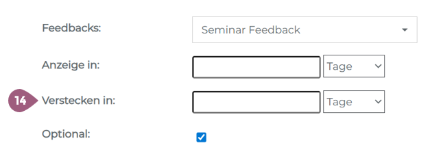 (14) Feedbacks bei Seminaren haben zusätzliche Optionen: Sie können nach einer festgelegten Zeit automatisch ausgeblendet werden. Außerdem können die Feedbacks für Seminare individuell angepasst werden, indem Platzhalter in den Feedback-Fragen verwendet werden. Mehr zu den Feedbacks finden Sie hier.