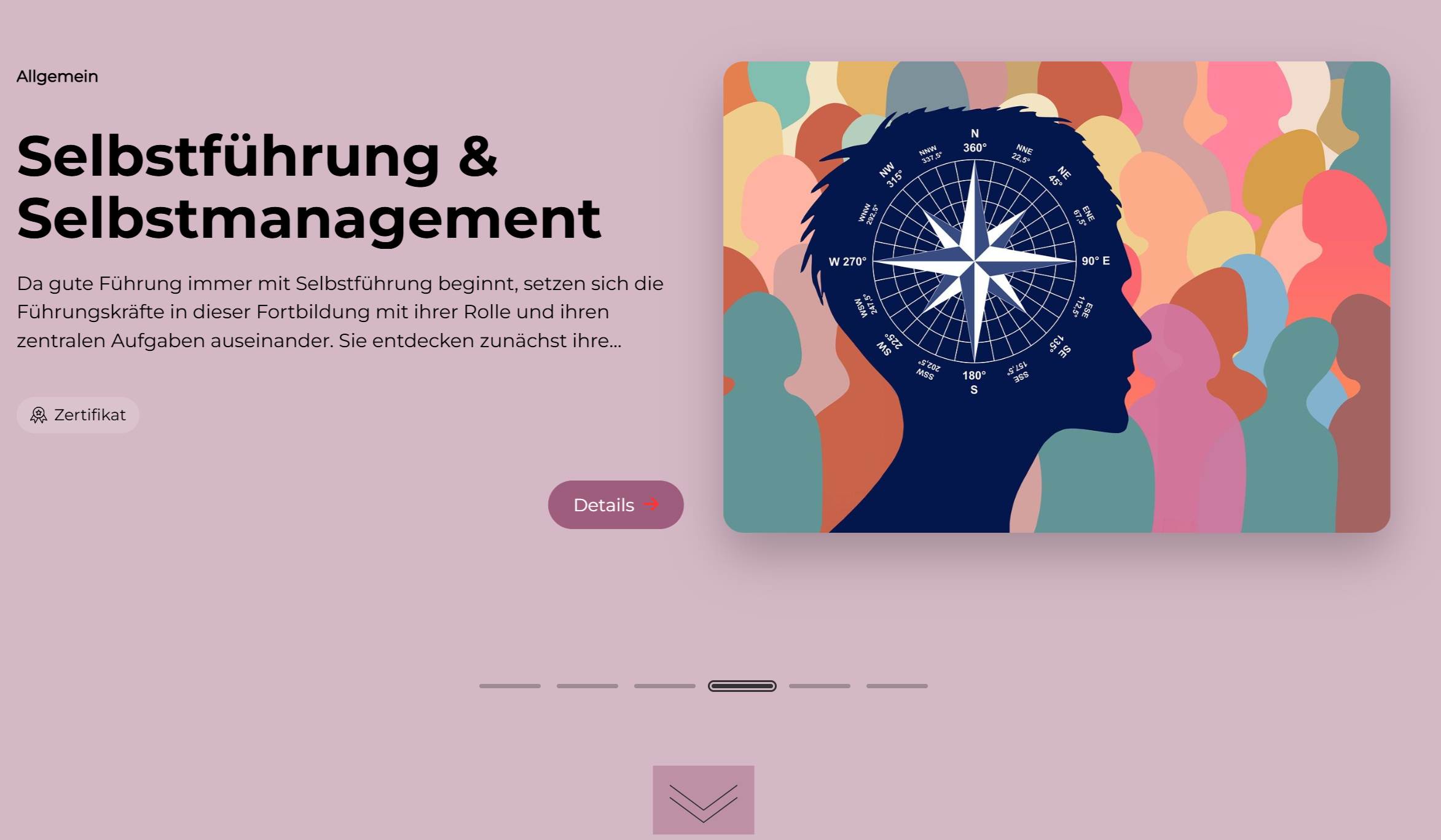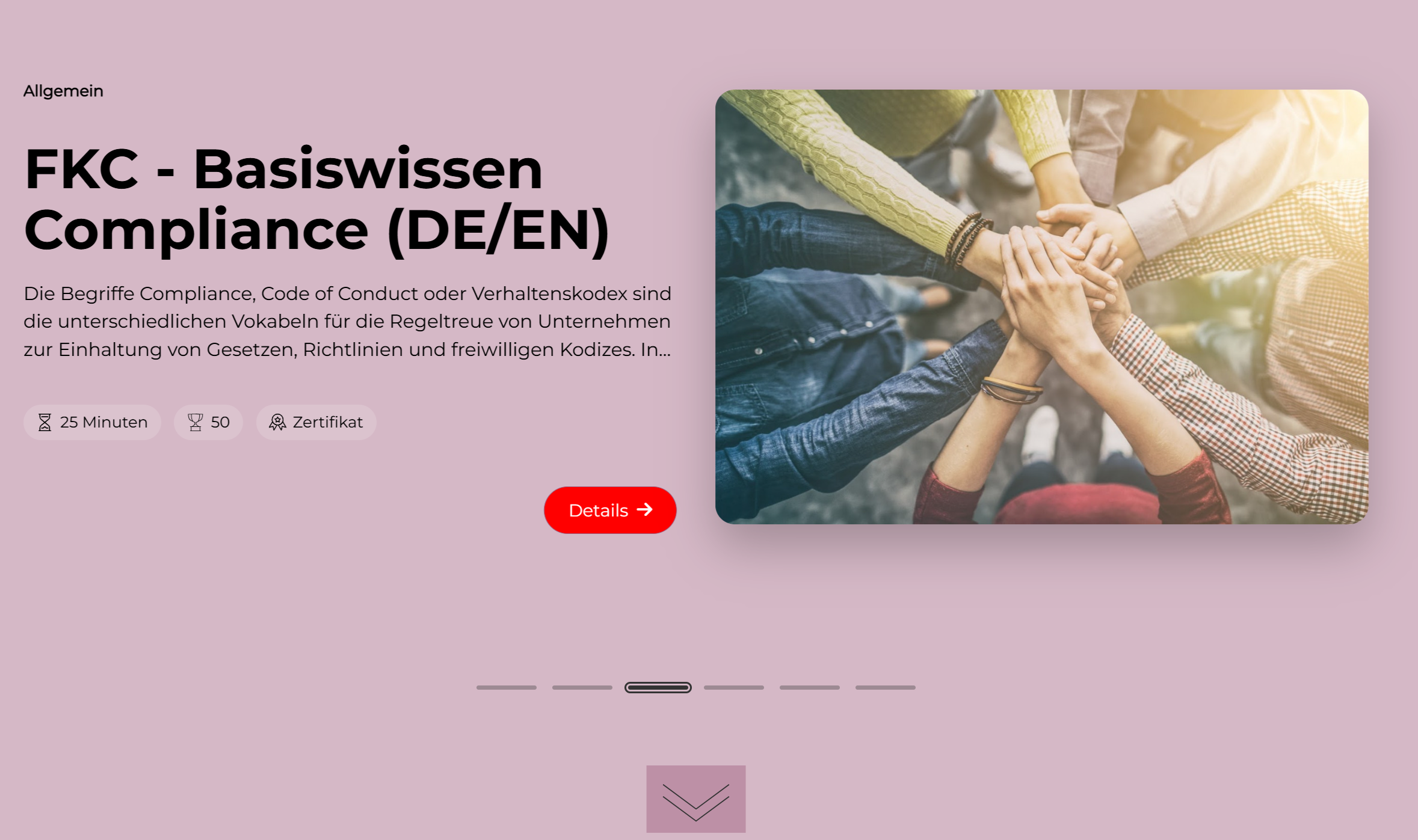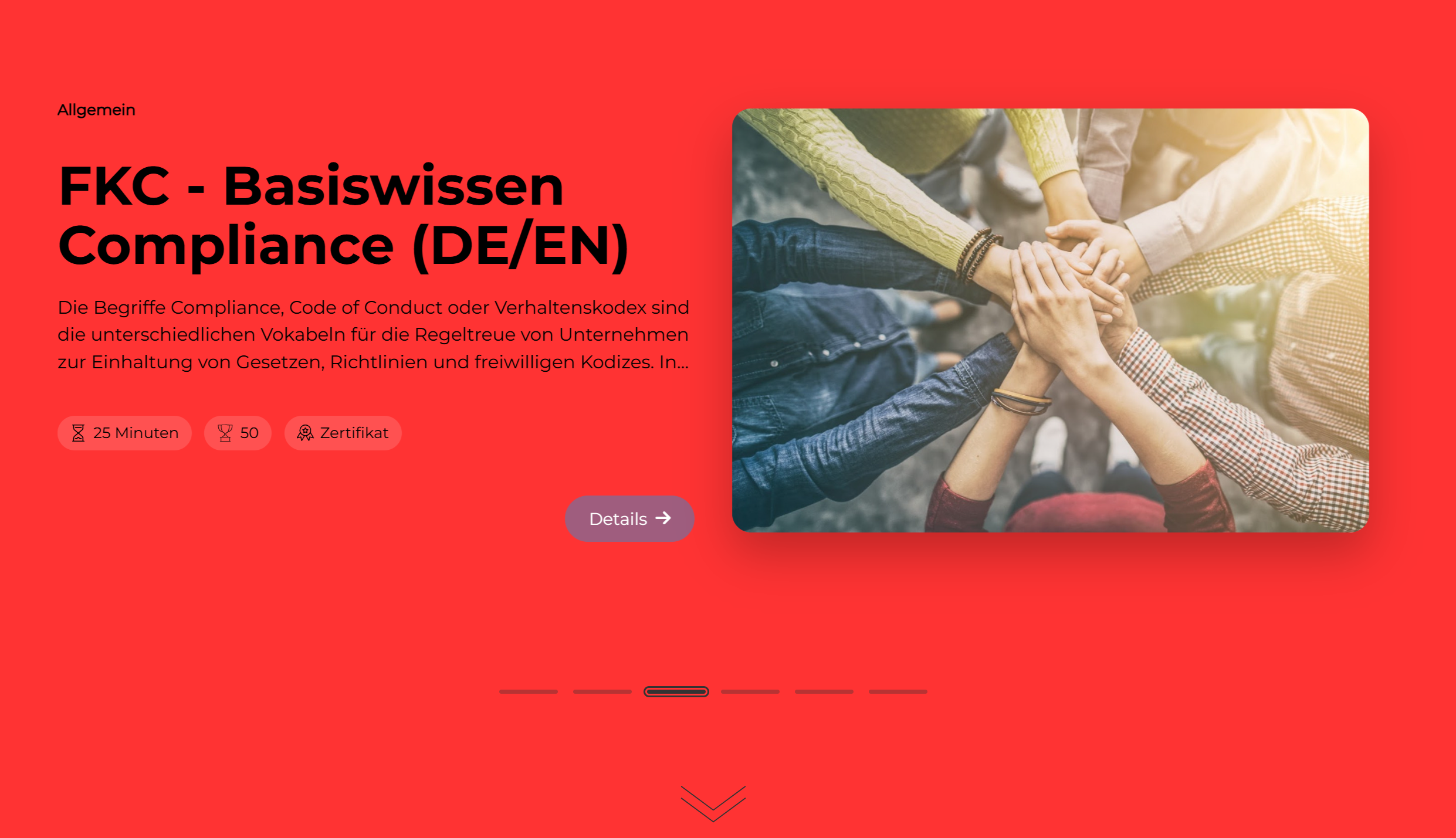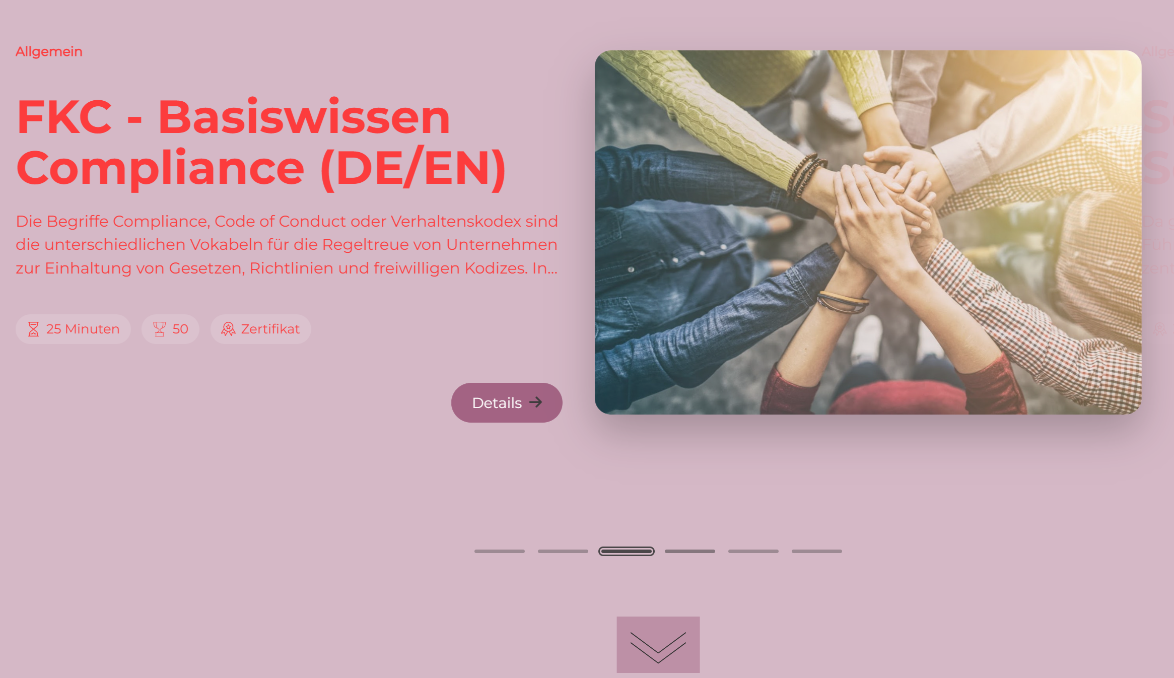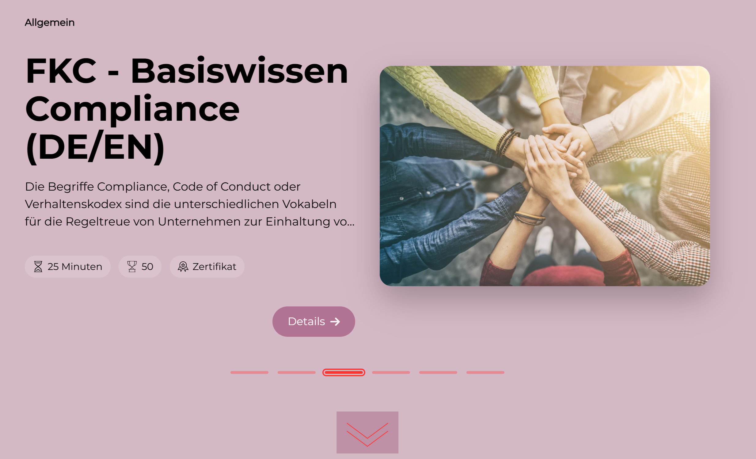 Im Slider sehen Benutzer die wichtigsten Informationen zu den jeweiligen Elementen. Bilder werden ausschließlich angezeigt, während Lerneinheiten zusätzliche Kerninformationen enthalten.