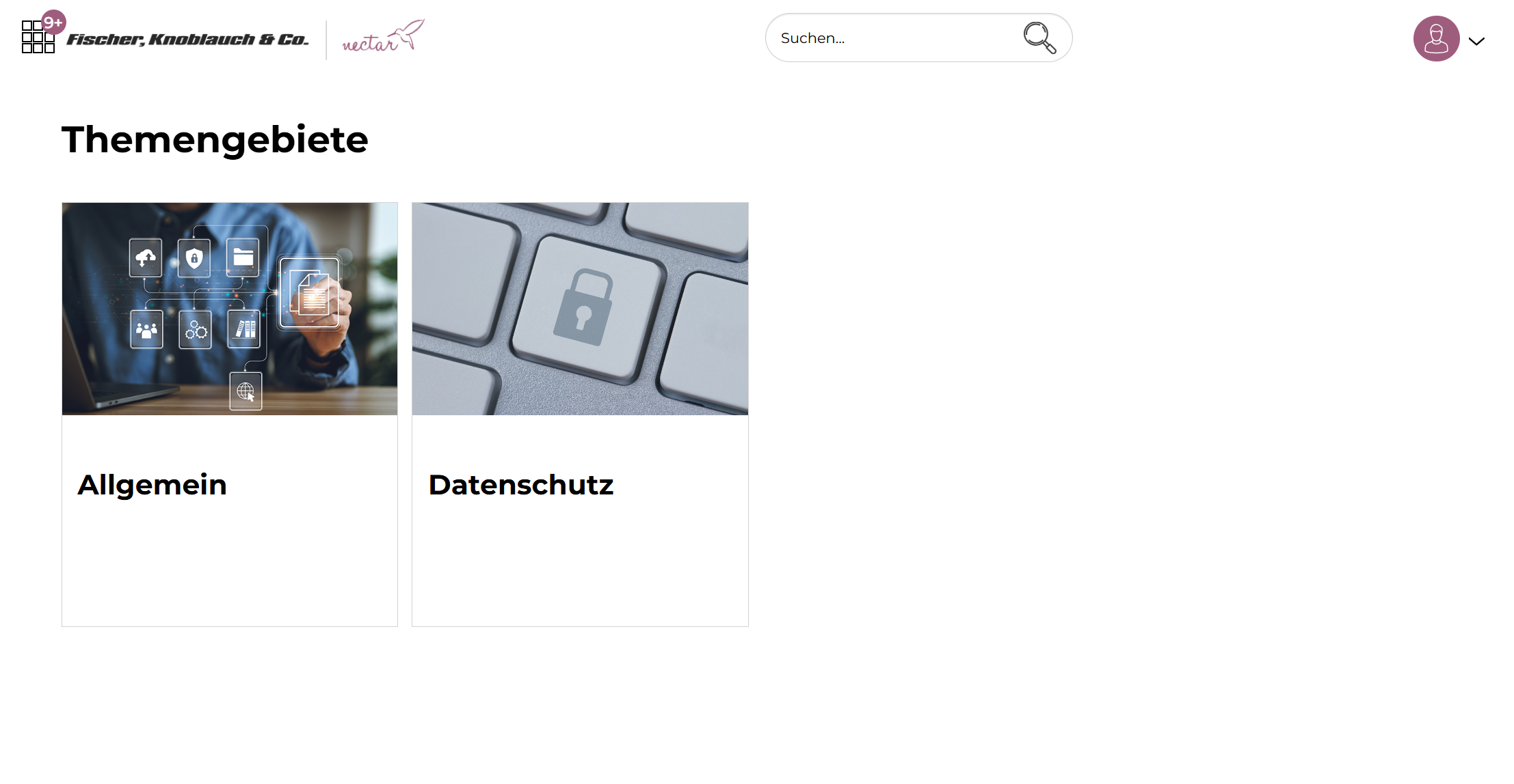 Themengebiete Über das Menü können Sie Ihre Inhalte thematisch organisieren. Alle Lerneinheiten, die zu einem Thema gehören, werden unter den jeweiligen Kacheln angezeigt.