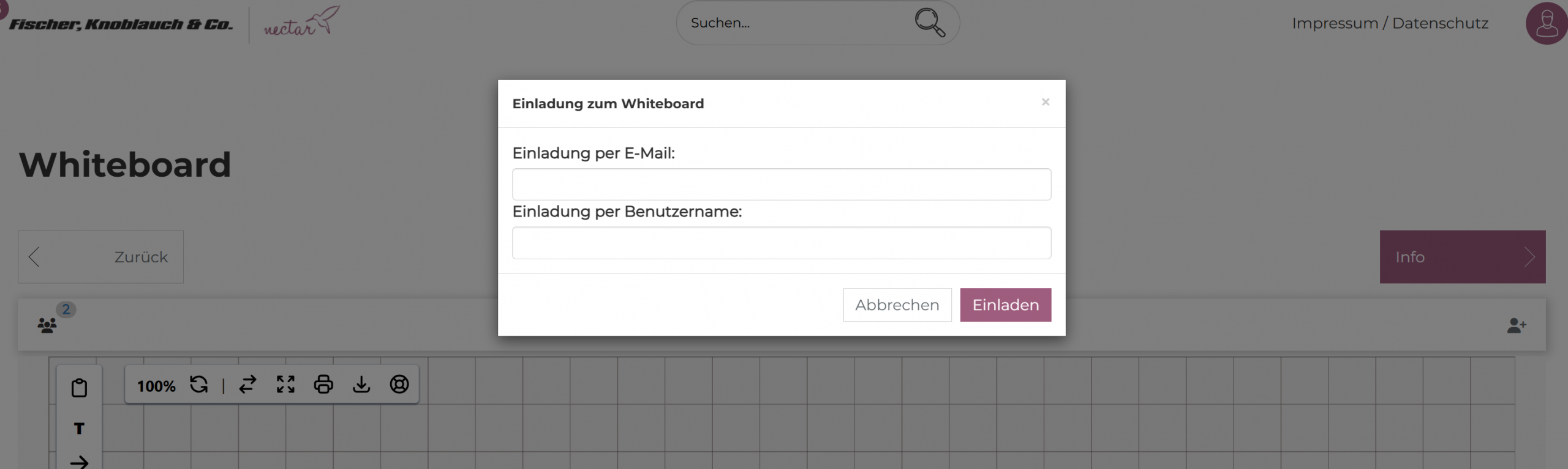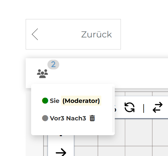 (2) Teilnehmende anzeigen: Über den Personen-Button können Sie sehen, wie viele Benutzer zu diesem Whiteboard Zugriff haben und die bei Bedarf entfernen: