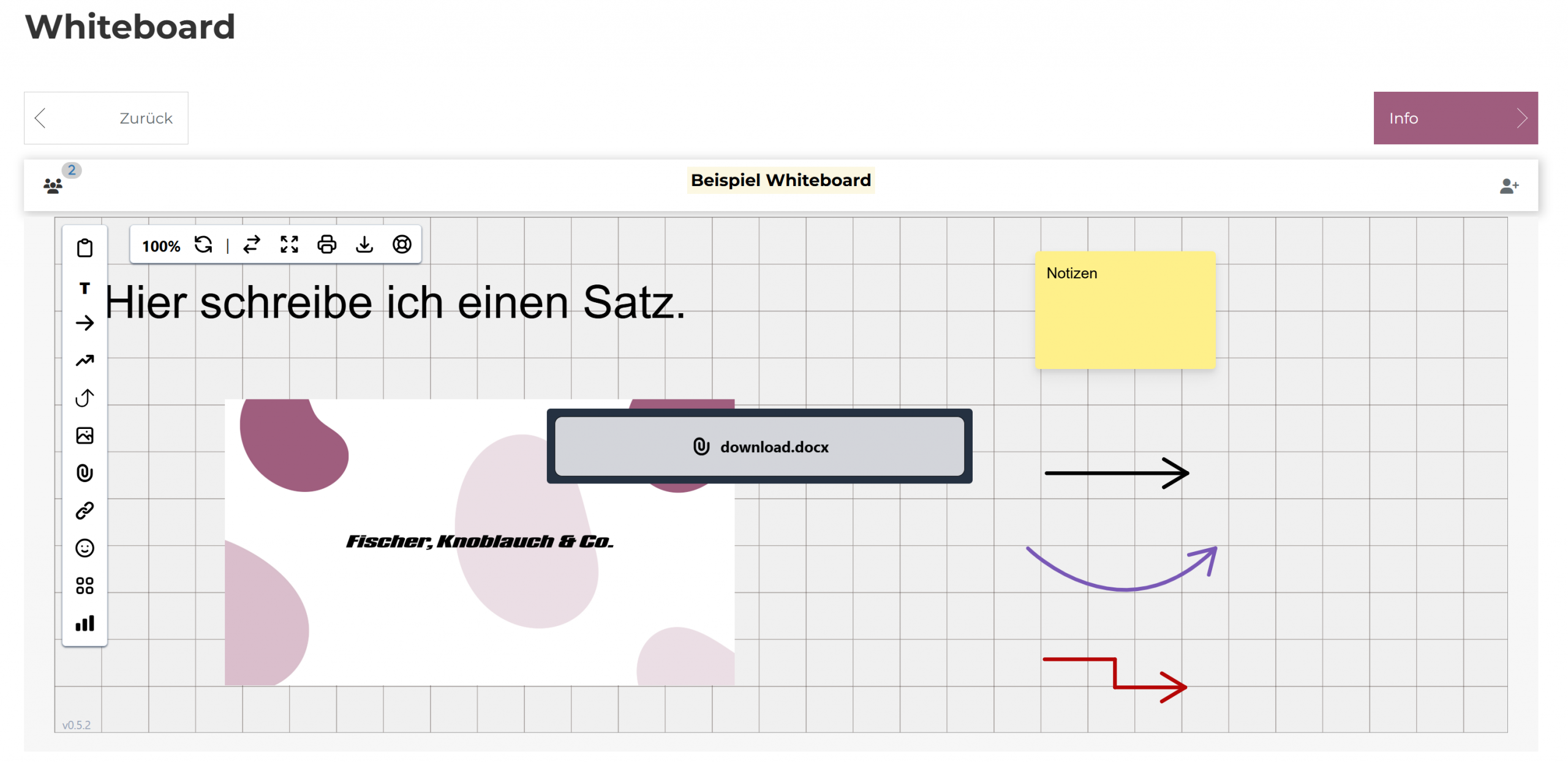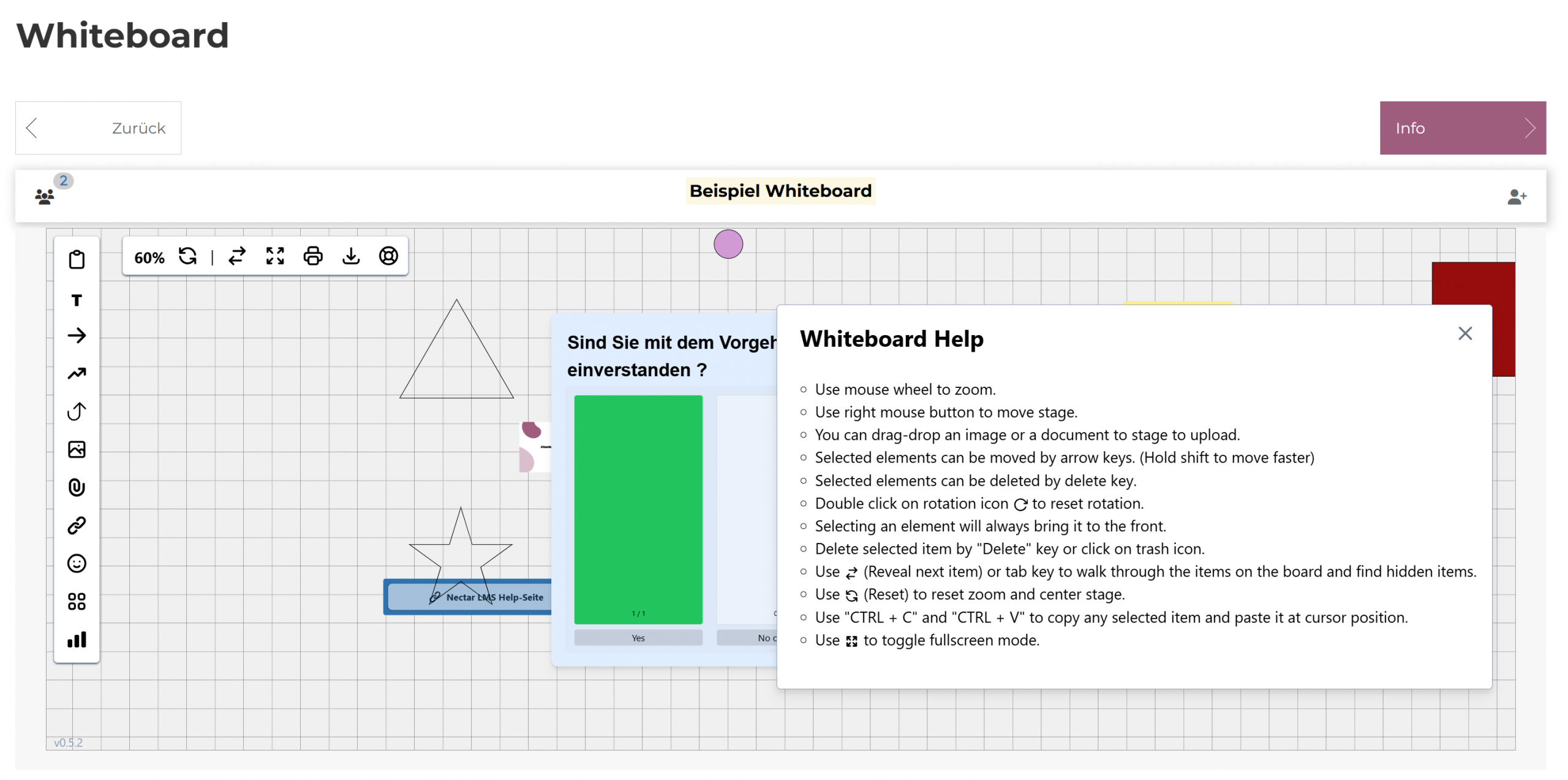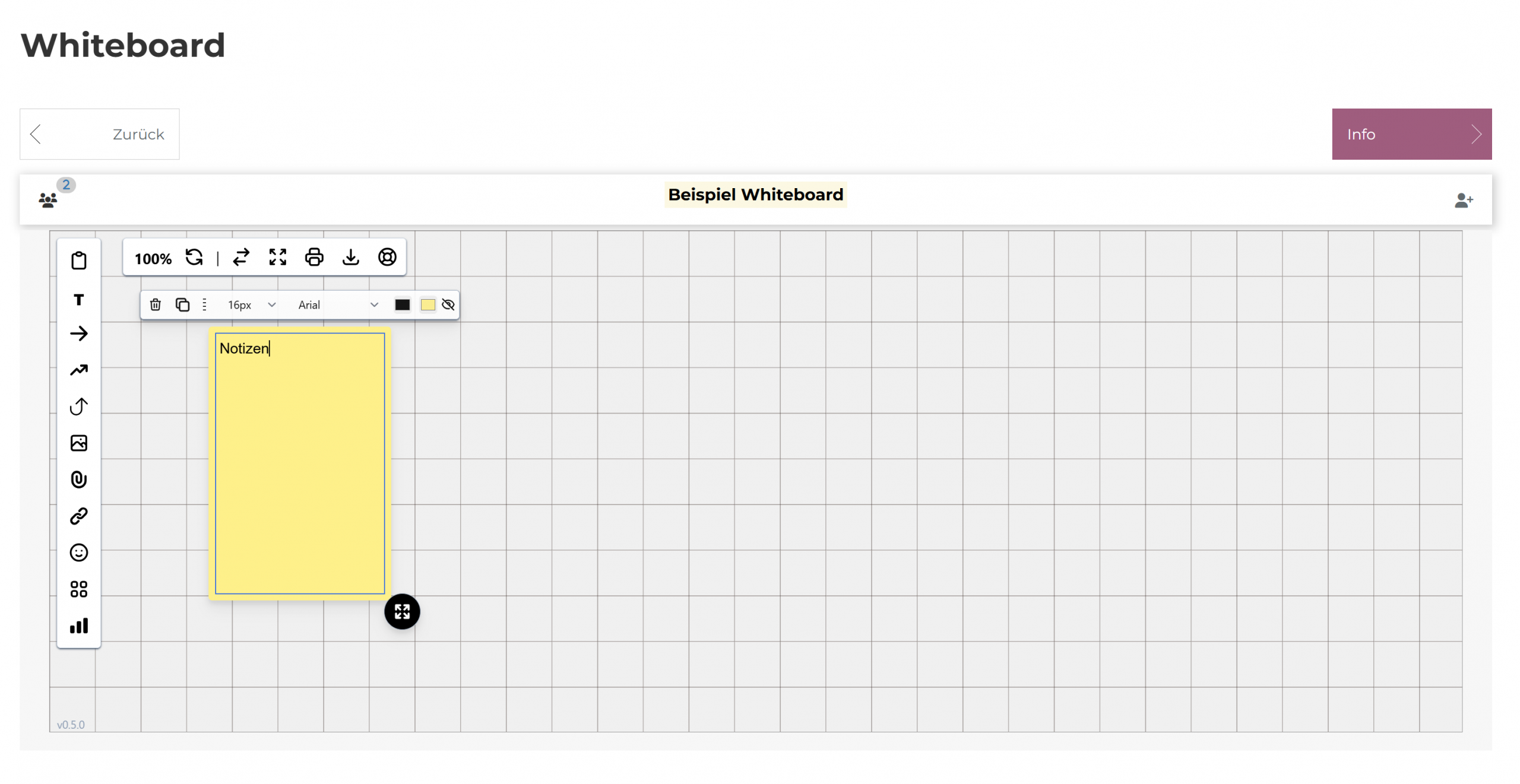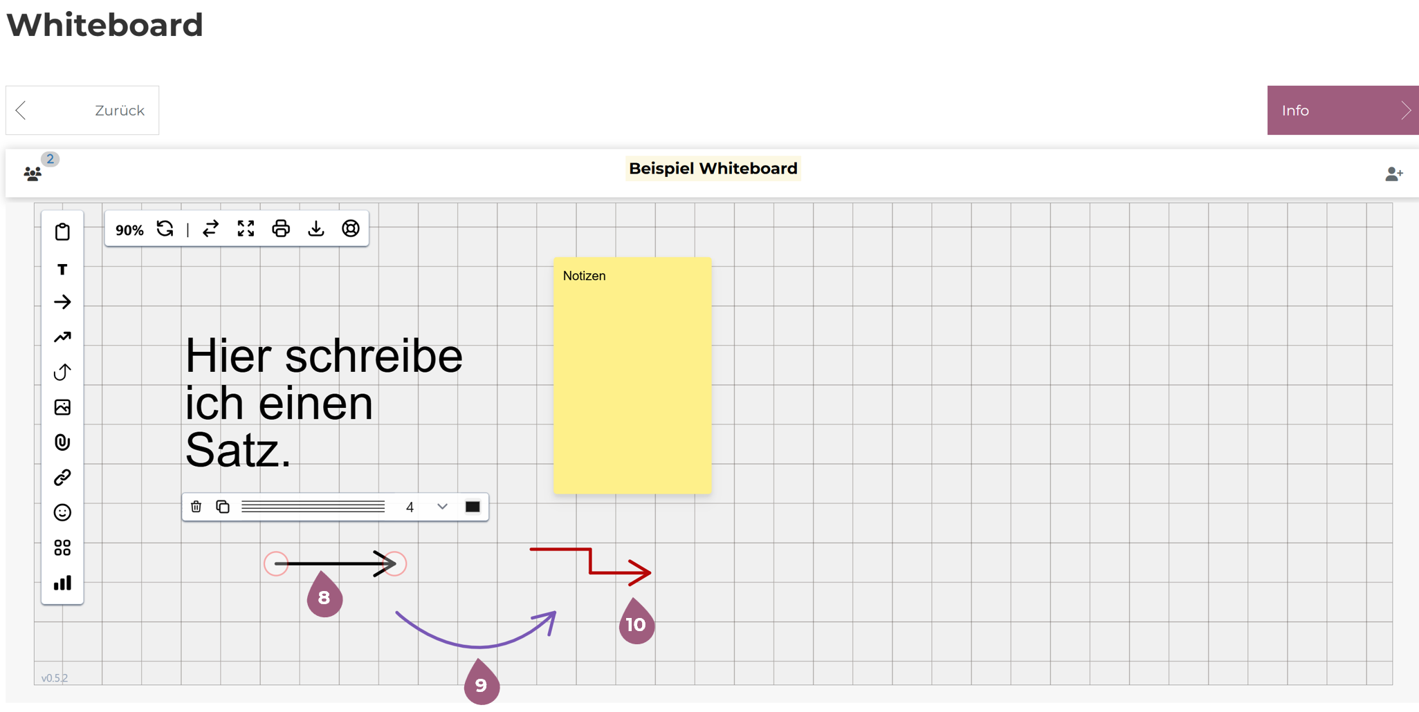 (5) Whiteboard-Informationen: Über den Info-Button sehen Sie weitere Informationen über die Verwaltung des Whiteboards.