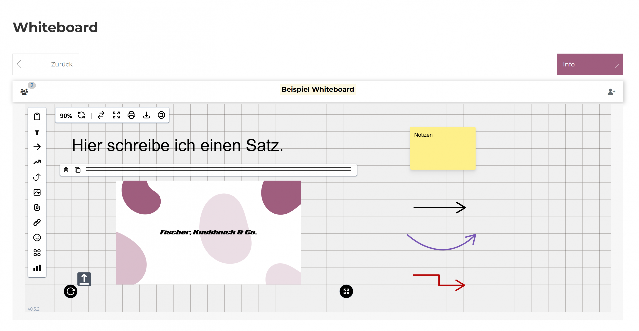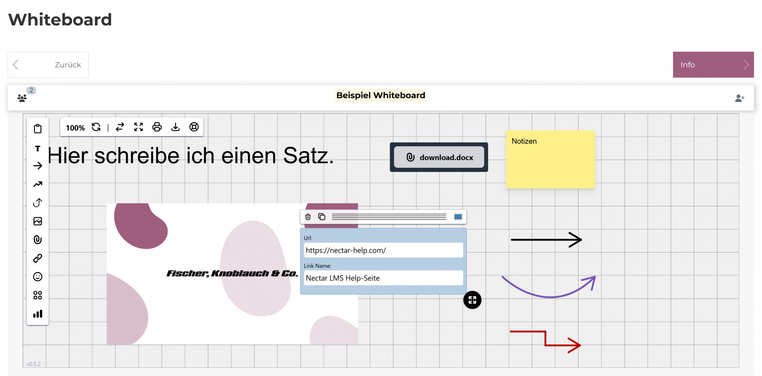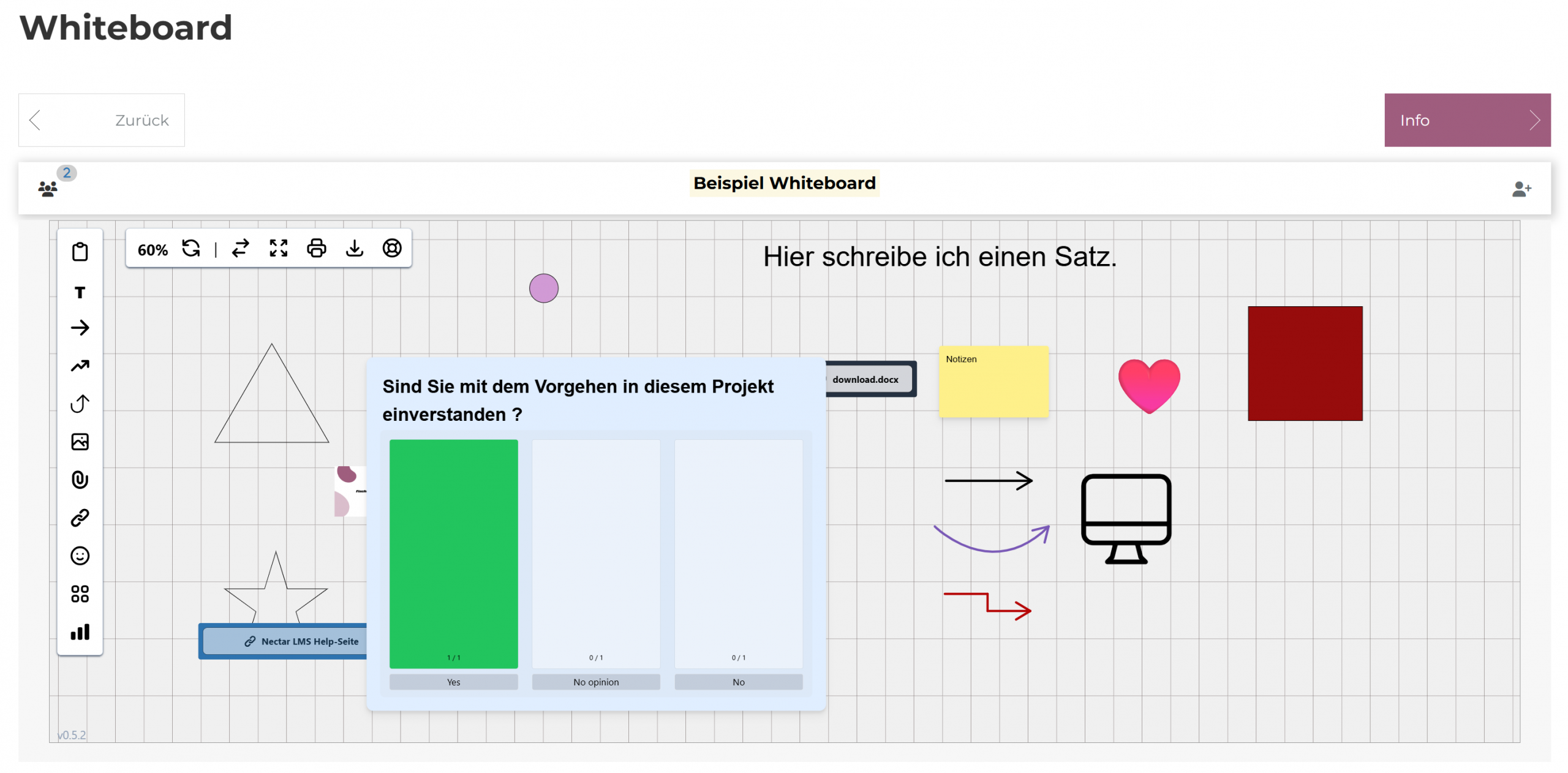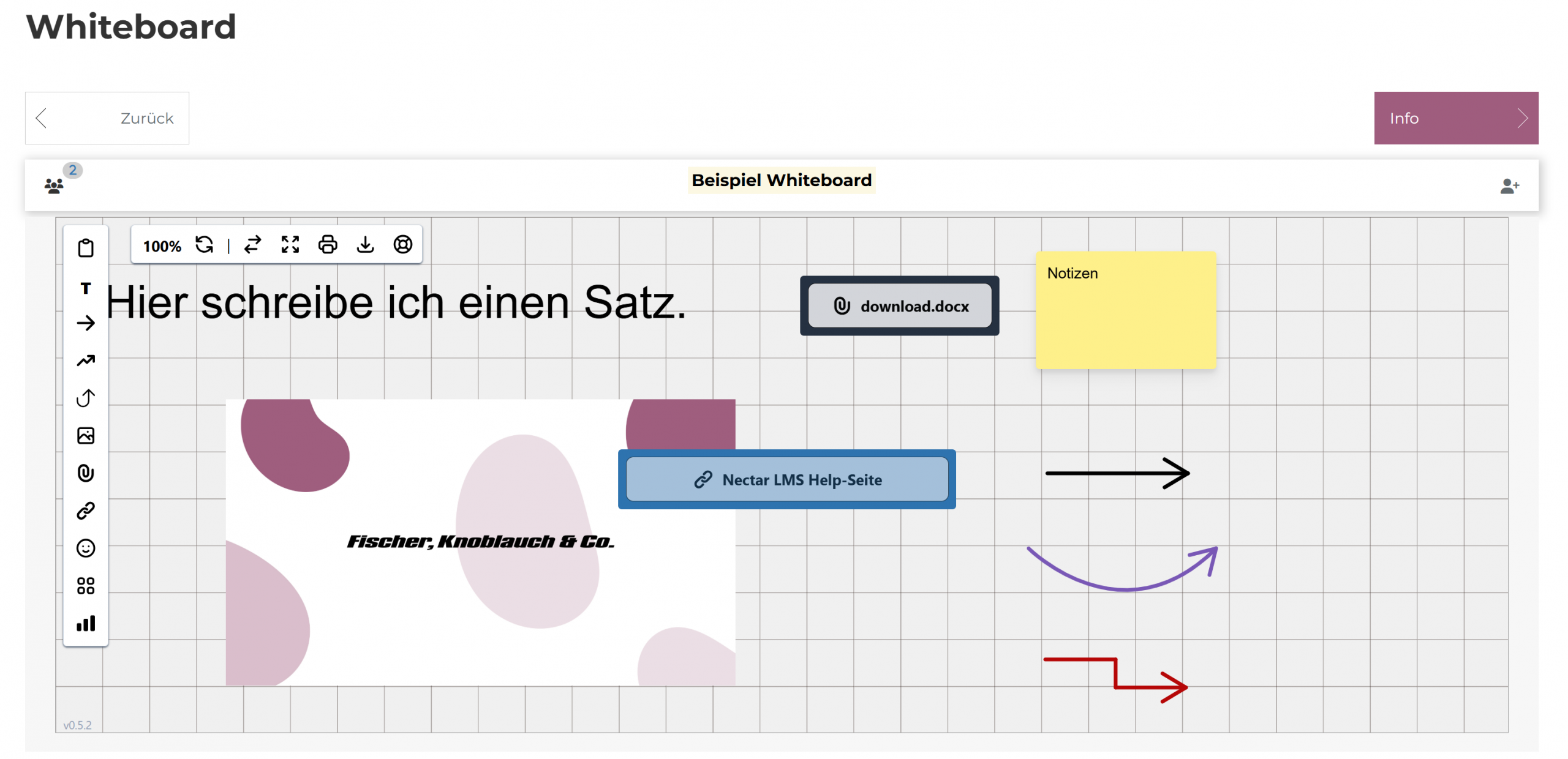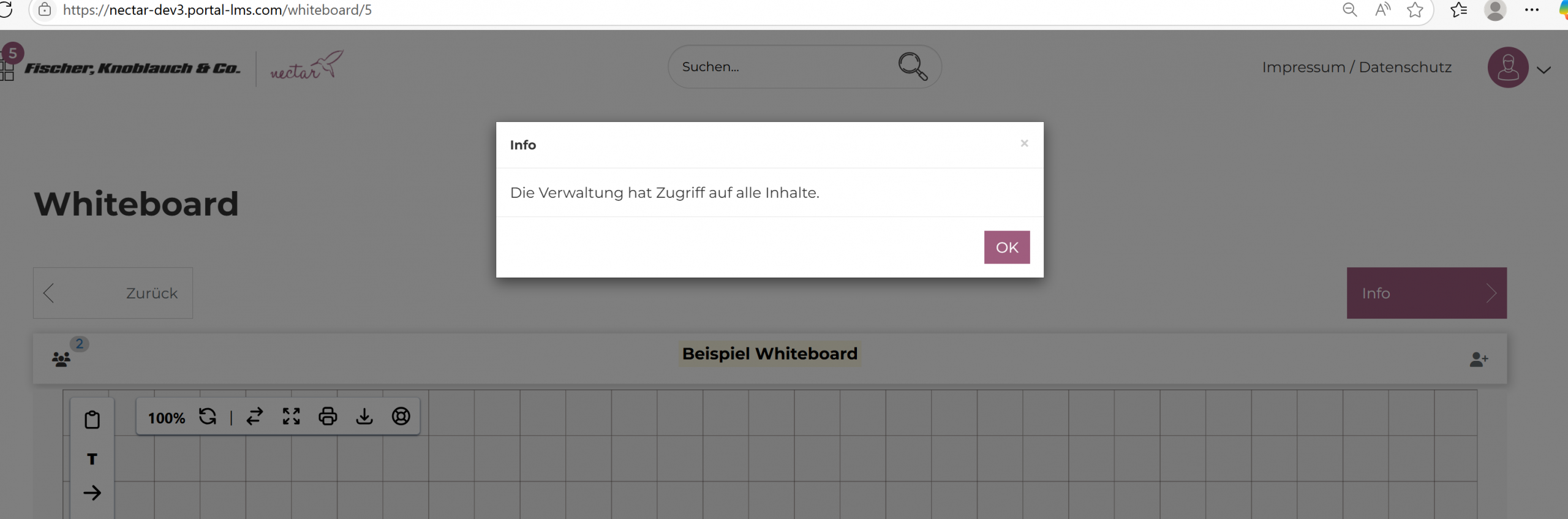 (5) Whiteboard-Informationen: Über den Info-Button sehen Sie weitere Informationen über die Verwaltung des Whiteboards.